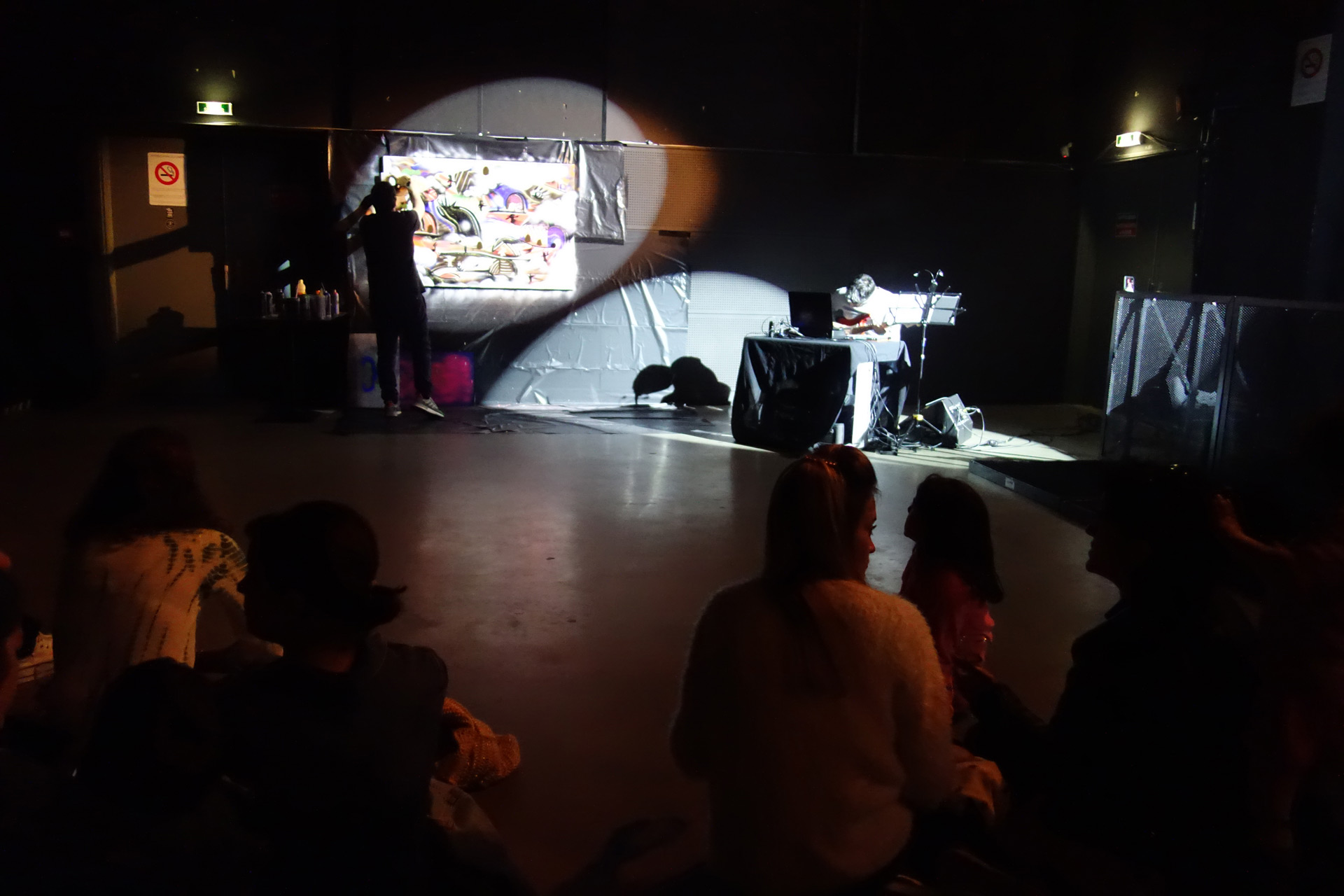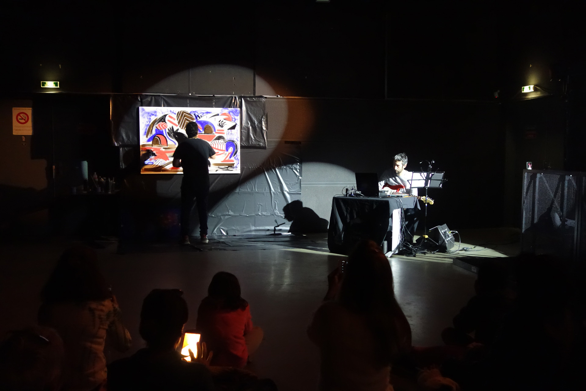 Performance live durant le vernissage de l'exposition à l'Atabal Biarritz en mai 2019.
