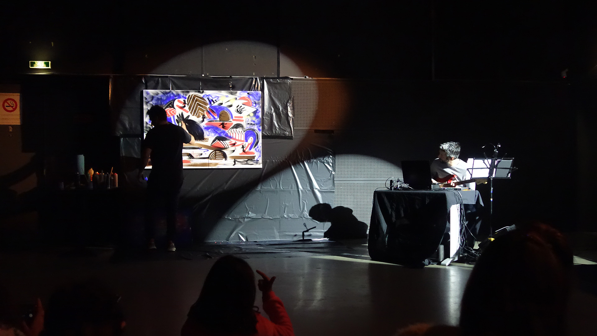 Improvisation d’une peinture de 1m sur 1.5m durant 45minutes.
